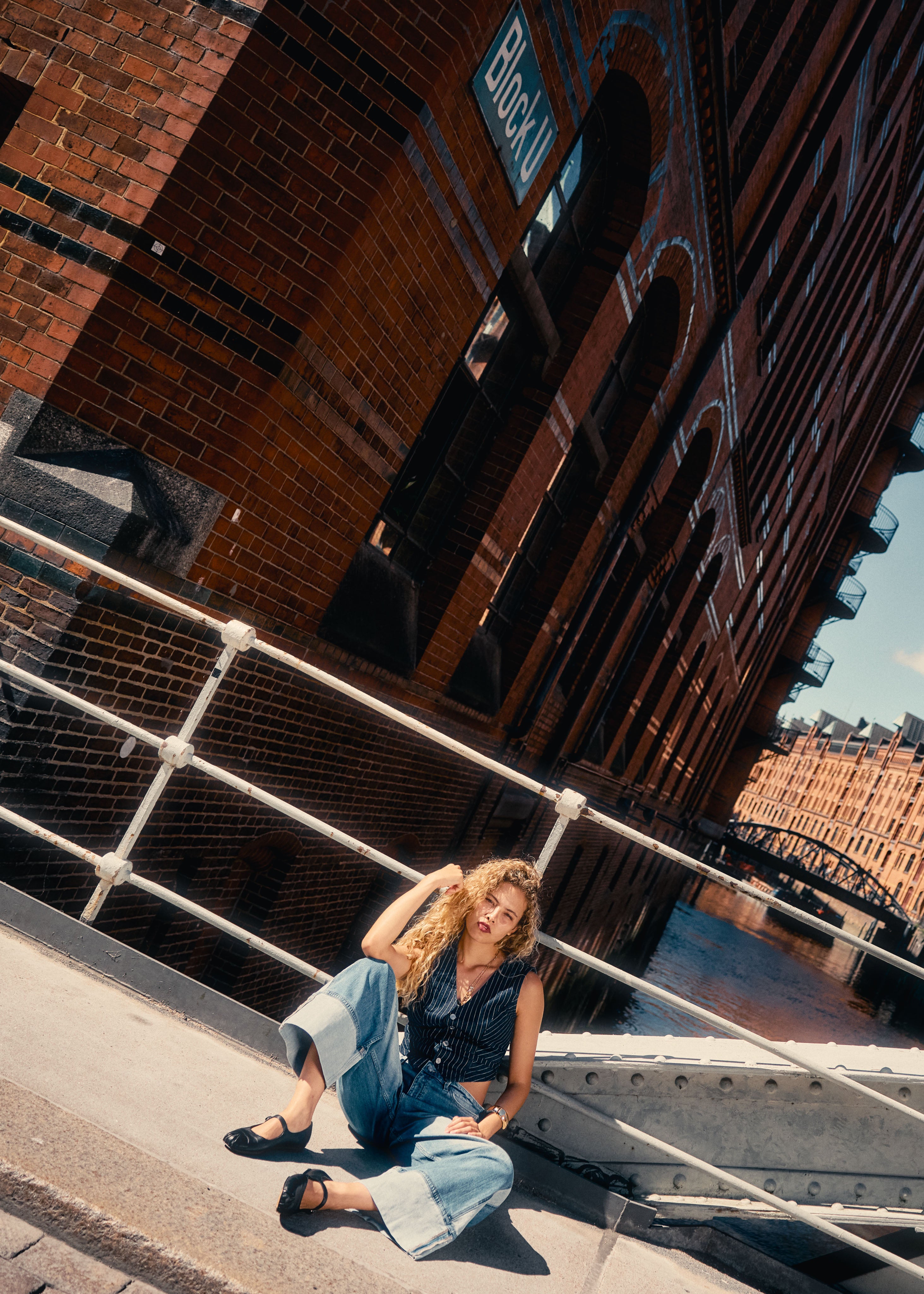 Step into the vibrant energy of Hong Kong’s night markets, where neon lights and midnight hues inspire bold, effortless style. Like, a crisp white denim jacket paired with a long denim maxi skirt — a look that captures urban sophistication with a modern twist.
